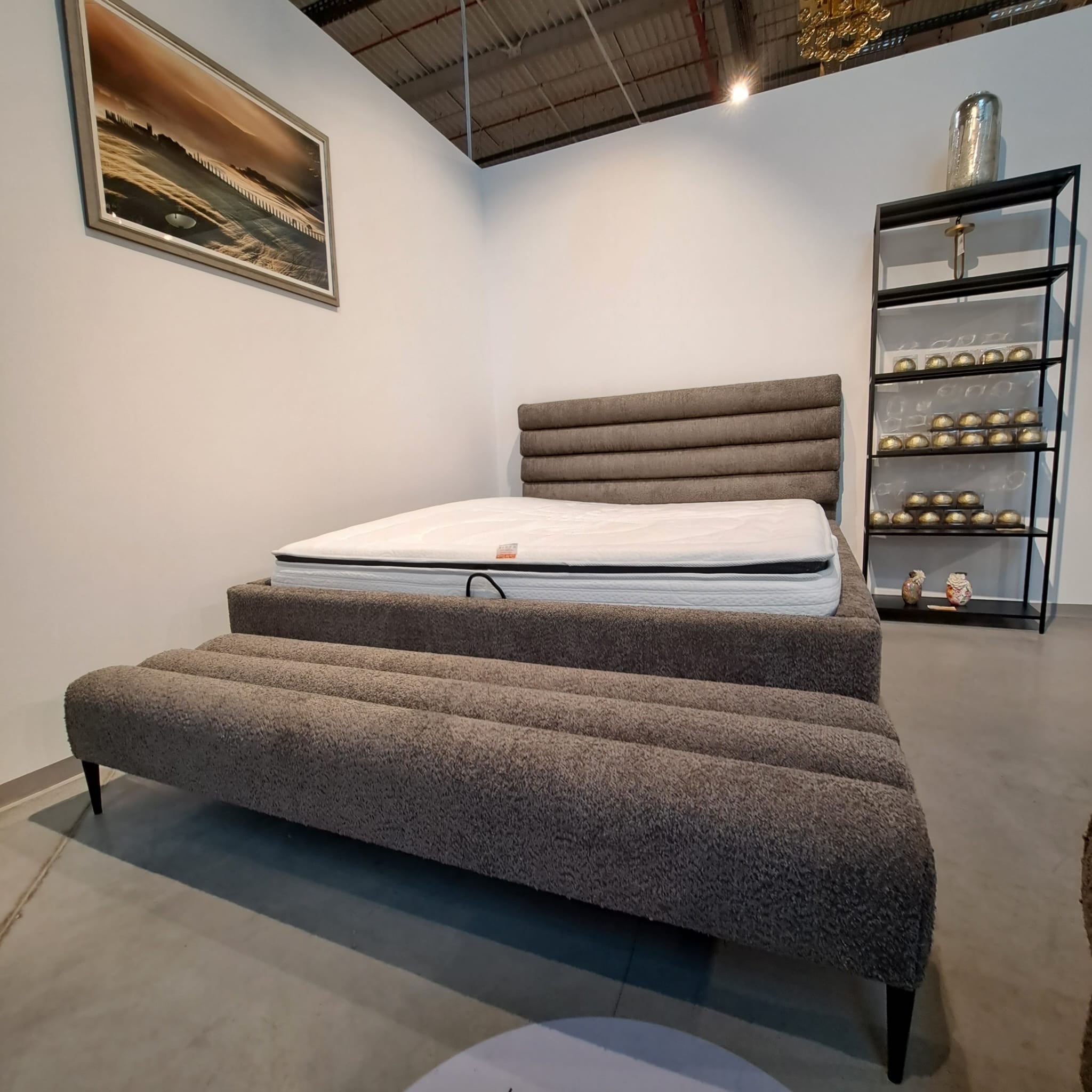 Banquette rembourrée avec pieds en tissu et métal, Piombino Marron / Noir, l174xL47xH37 cm