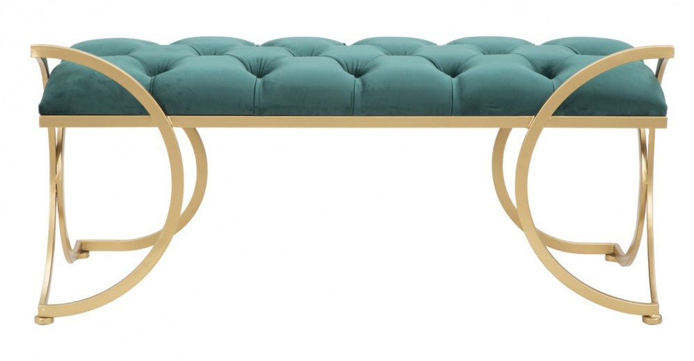 Banquette rembourrée avec pieds en tissu et métal Luxy Velvet Vert / doré, l103xA43xH47 cm