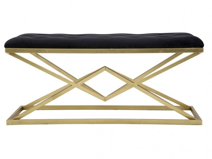 Banquette rembourrée avec pieds en tissu et métal Pyramid Noir / doré, l100xA40xH45 cm