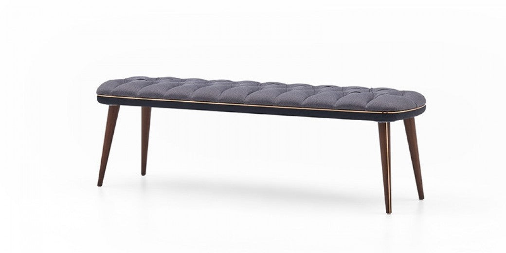 Banc rembourré en tissu, avec pieds en bois Ingrid Medium Navy / Walnut, l100xA40xH49 cm