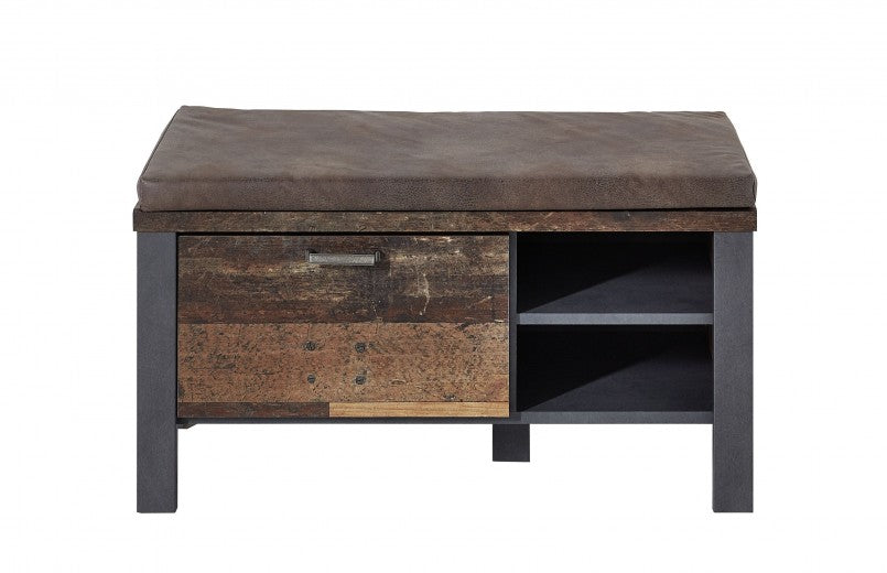 Banquette rembourrée en cuir écologique, avec 1 tiroir Marron Chelsea / Graphite, l94xA40xH49 cm
