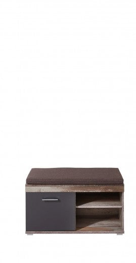 Banquette 1 porte tissu Krone Marron / Graphite, l90xA38xH46 cm
