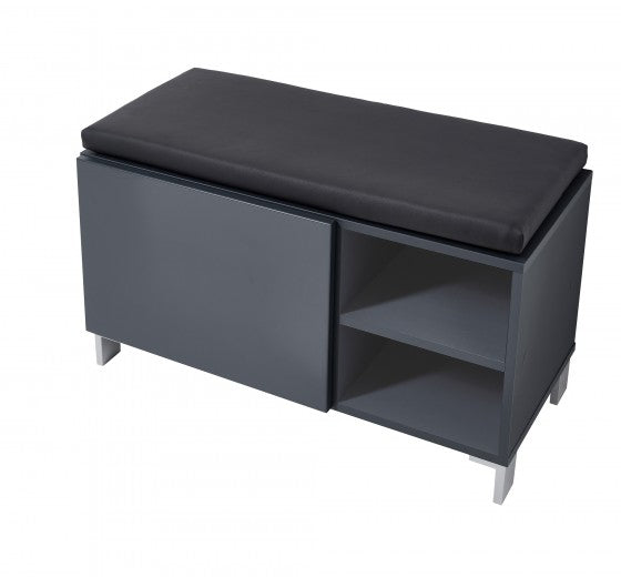 Banc tapissé de cuir écologique, avec 1 porte Kalis Grafit, l80xA39xH48 cm