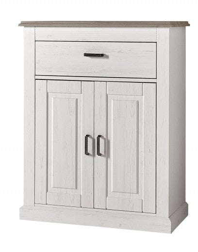 Meuble bois et MDF 1 tiroir et 2 portes Gabrielle 19 Blanc, l70xA40xH101 cm