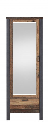 Meuble d'entrée palette avec miroir, 1 porte et 1 tiroir Chelsea Naturel / Graphite, l69xA40xH194 cm