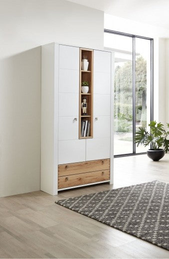 Meuble d'entrée palette et MDF avec 2 tiroirs et 2 portes, Selina Blanc / Naturel, l92xA41xH202 cm