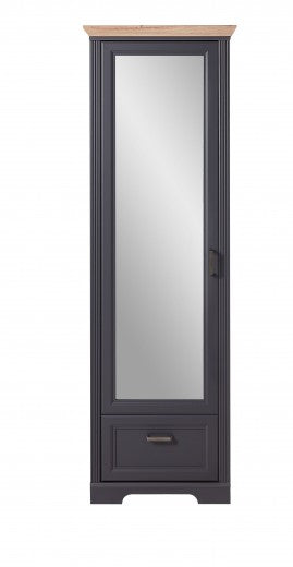 Meuble d'entrée en MDF avec miroir, 1 porte et 1 tiroir, Jessie Grafit, l65xA41xH204 cm