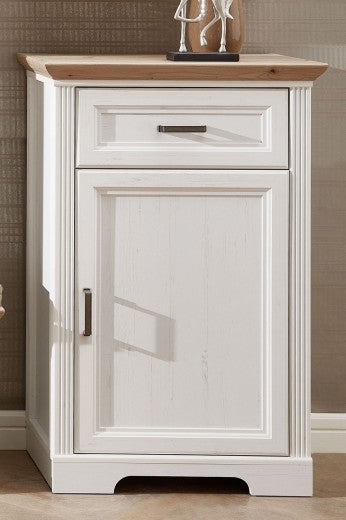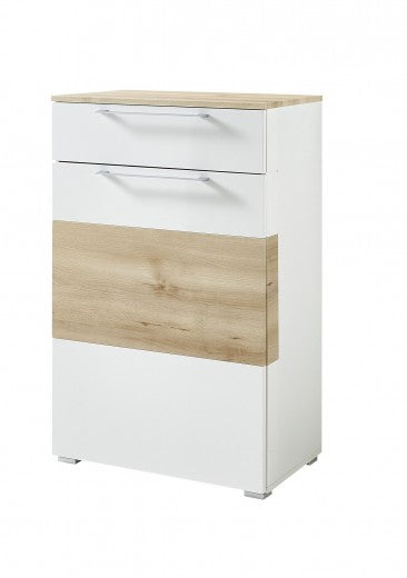 Meuble d'entrée en MDF, avec 1 porte et 1 tiroir, Renos Blanc / Hêtre, l65xA40xH102 cm