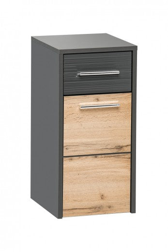 Meuble en bois aggloméré et MDF, avec 1 tiroir et 2 portes Krone Graphite / Natur, l77xA38xH107 cm