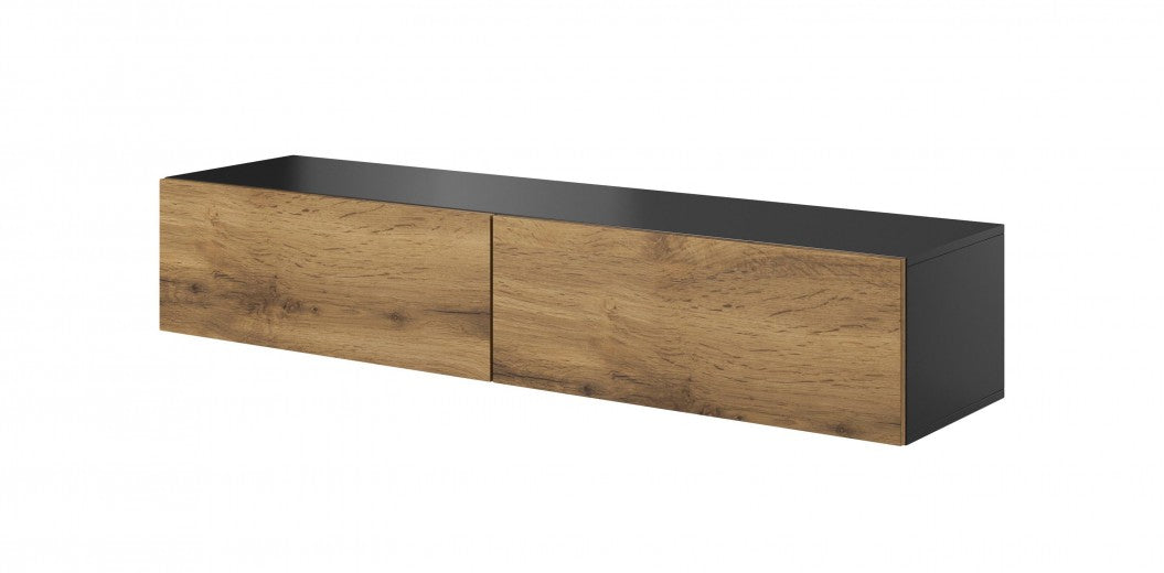 Meuble TV en bois et placage, avec 1 tiroir et 1 porte Large Mosaic 25 Chêne / Noir, l170xA42xH46 cm