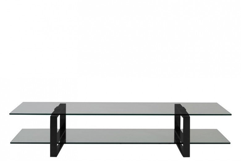Meuble TV verre et métal Katrine Marron / Noir, l120xA45xH32 cm