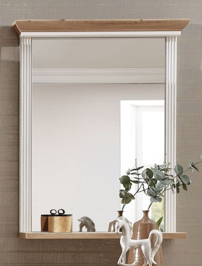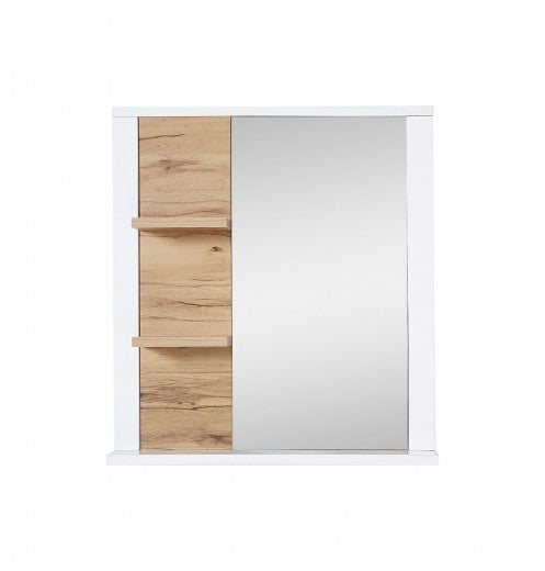 Miroir décoratif avec 2 étagères en aggloméré et MDF, Selina Blanc / Naturel, l73xA15xH80 cm
