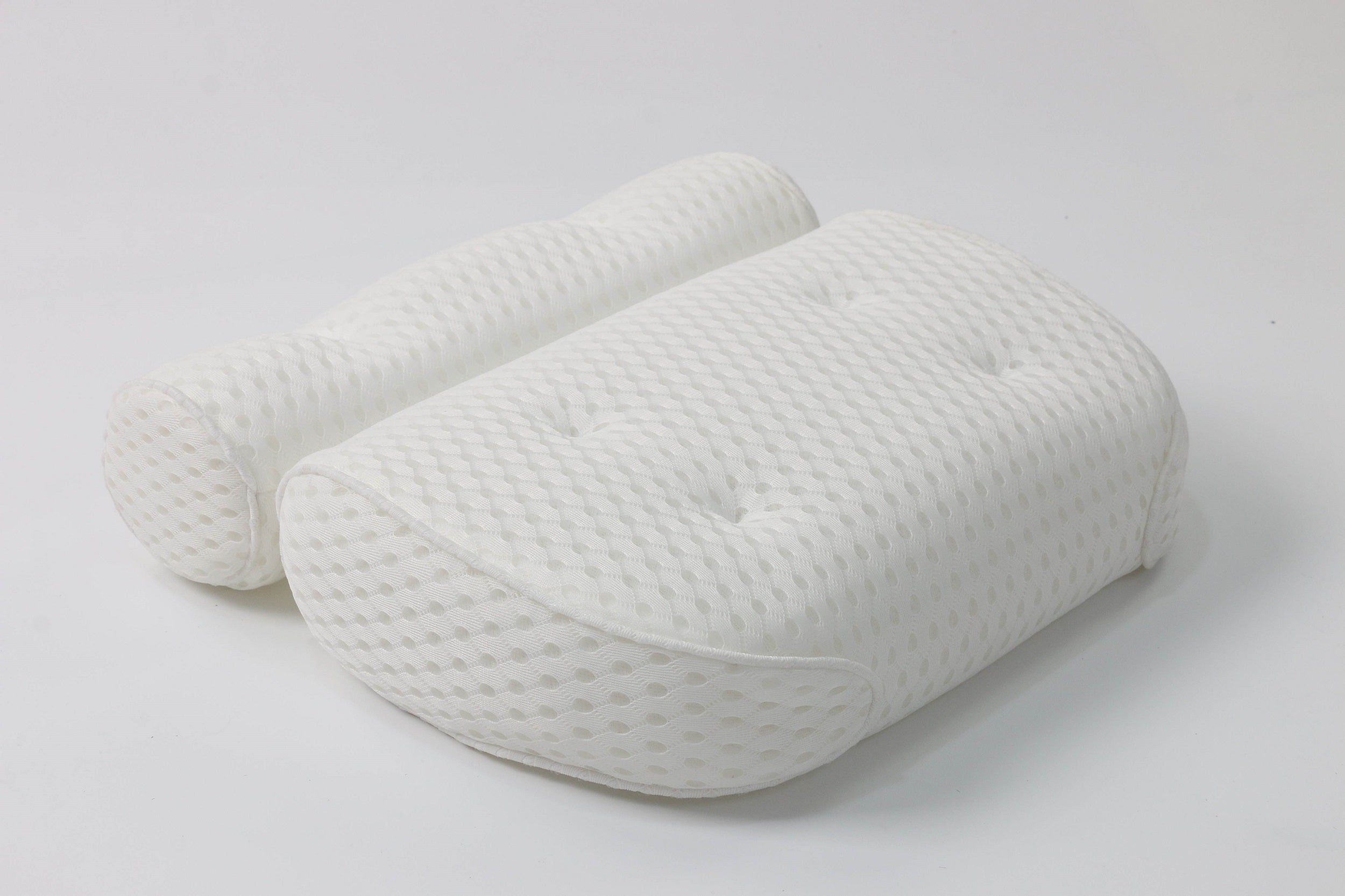 Oreiller de bain pour baignoire, avec 6 ventouses, Technologie 4D Air Mesh, Blanc 35 x 35 cm