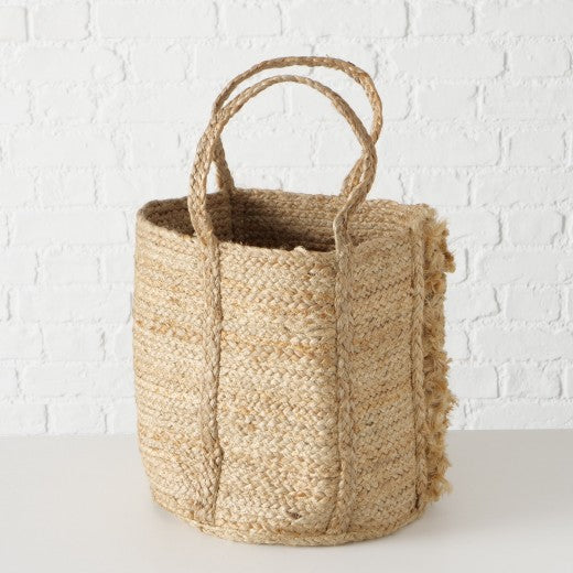 Panier de rangement avec poignées, en jute Skien Natural, Ø30xH30 cm
