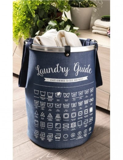 Panier à linge avec poignées, Guide à linge Bleu / Blanc, Ø37xH50 cm