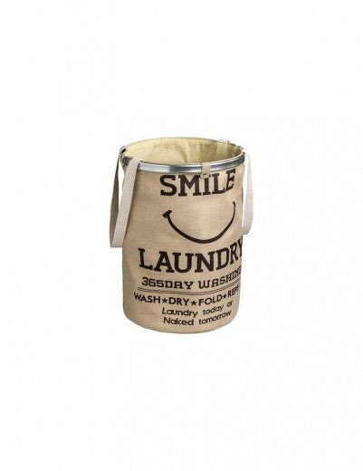 Panier à linge avec poignées, Laundry Smiley Beige / Marron, Ø37xH50 cm