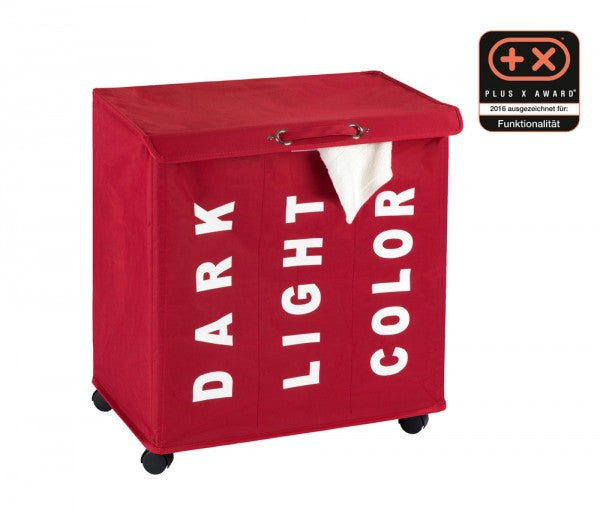 Panier à linge avec couvercle 3 compartiments et roulettes, Trivo Rouge, l56xA35xH60 cm