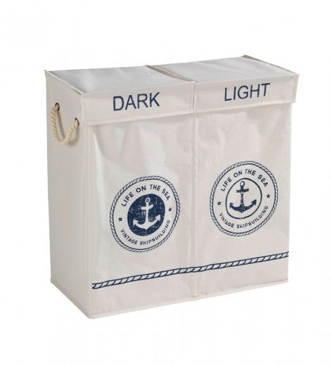 Panier à linge avec couvercle et 2 compartiments, Duo Sylt Beige, l60xA30xH60 cm
