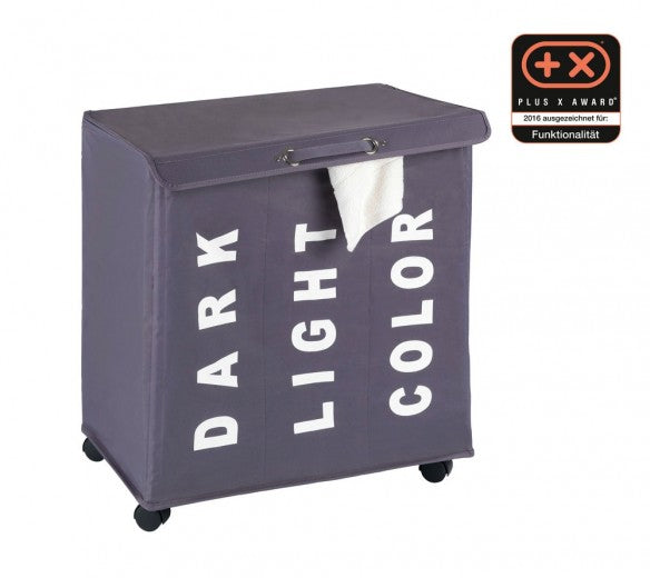 Panier à linge avec couvercle 3 compartiments et roulettes, Trivo Dark Gris, l56xA35xH60 cm