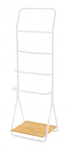 Porte serviette de salle de bain, en métal et bambou, Verona Blanc, l51xA40xH156,5 cm