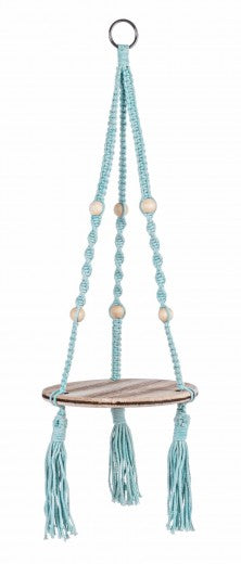 Porte-pot suspendu, en bois de Paulownia, Bleu Rond Péruvien, Ø25xH87 cm