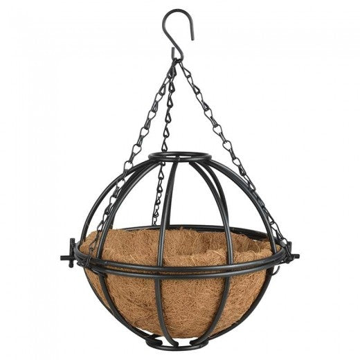 Pot suspendu en métal et fibres de coco, Panier rond noir, Ø25,3xH22,9 cm