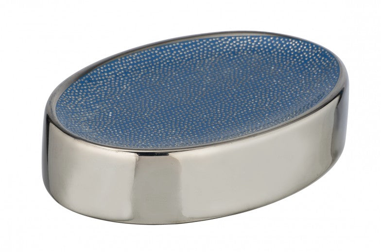 Porte-savon en céramique Nuria Argent / Bleu, L12xl8xH3 cm