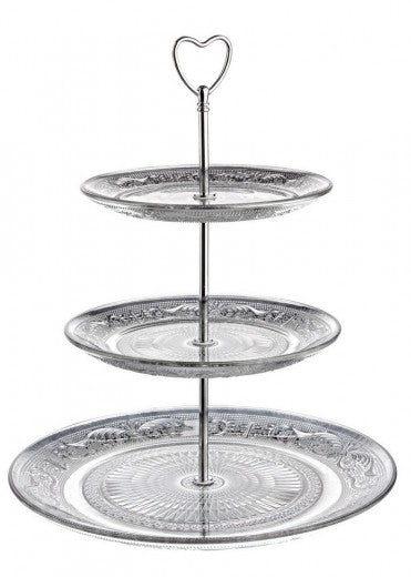 Présentoir à gâteaux en verre et métal, sur 3 niveaux d'argent Cake, Ø29 / Ø20 / Ø18 cm