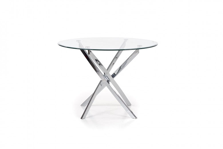 Raymond Transparent / Table en verre et métal chromé, Ø100xH73 cm