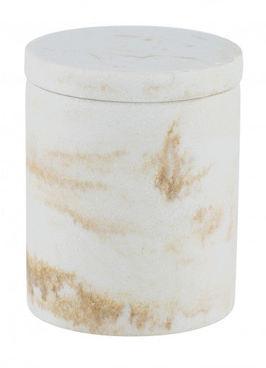 Récipient avec couvercle, en polyrésine, Odos Blanc / Or, Ø8,5xH10 cm