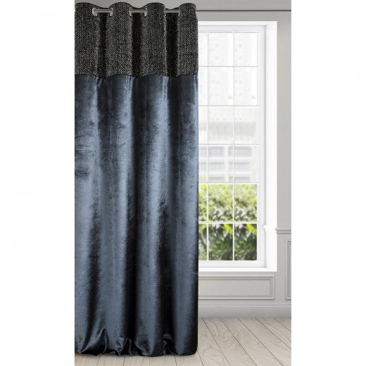Rideau en Velours Mady Bleu / Argent, 140 x 250 cm, 1 pièce