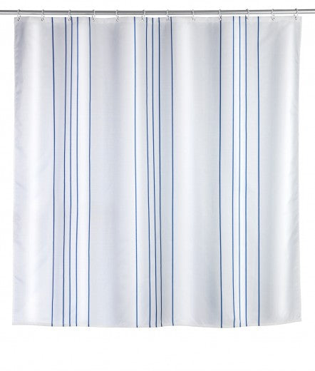 Rideau de douche en polyester, Lin Blanc / Bleu, 180 x 200 cm