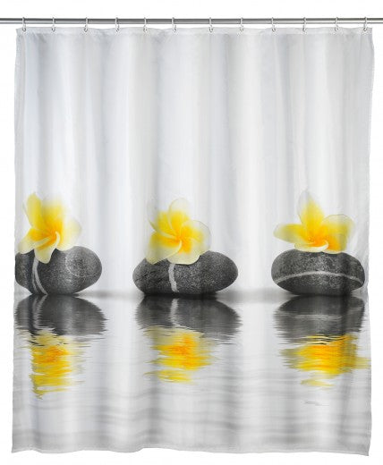 Rideau de douche en polyester, Pierres et Fleur Blanc, 180 x 200 cm