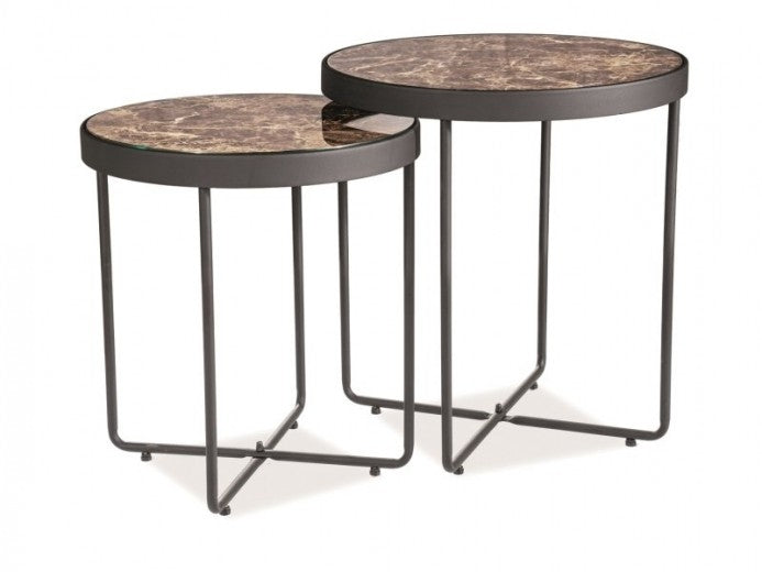 Set de 2 tables basses en verre et métal Manta Marble / Noir, Ø44xH49 cm / Ø40xH43 cm