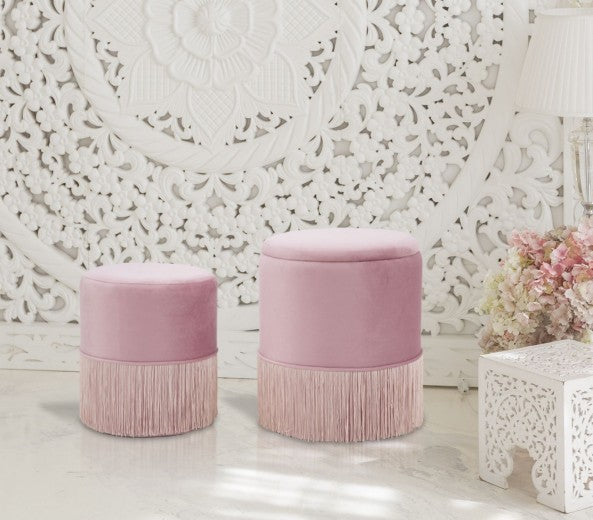 Set de 2 tabourets tapissés de tissu Lines Velvet Rose, Ø35xH42 / Ø30xH32 cm