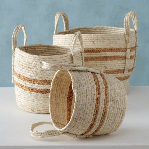 Set de 3 paniers de rangement, en feuilles de maïs Marly Natural, Ø31xH35 cm / Ø26xH30 cm / Ø21xH27 cm