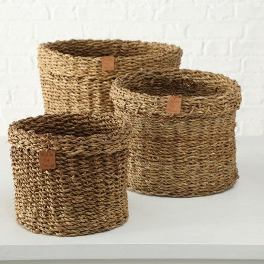 Set de 3 paniers de rangement, en jonc de mer Sophy Natur, Ø43xH30 cm / Ø35xH26 cm / Ø28xH22 cm