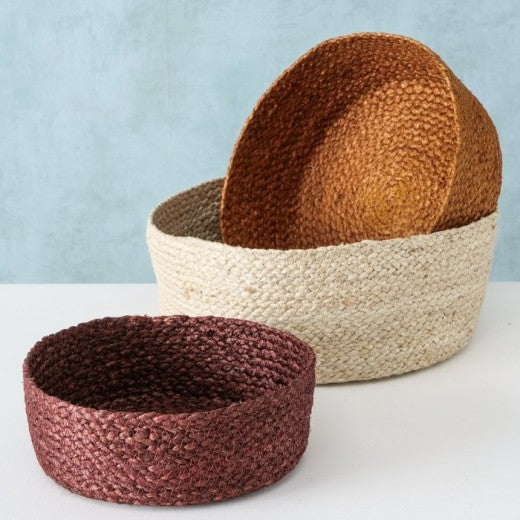 Set de 3 paniers de rangement, en Bogra Natural / Jute marron, Ø30xH12 cm / Ø26xH10 cm / Ø22xH8 cm