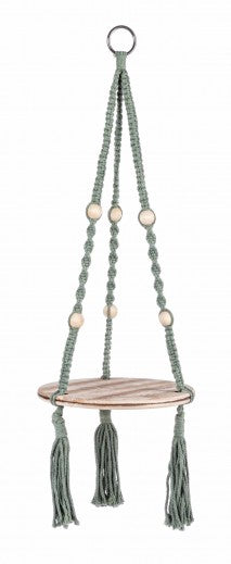 Suport suspendabil pentru ghiveci, din lemn de Paulownia, Peruvian Round Verde, Ø25xH87 cm