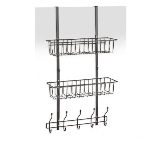 Support de porte avec 2 compartiments de rangement, métal, Rack II Noir, l39xA16xH71,5 cm