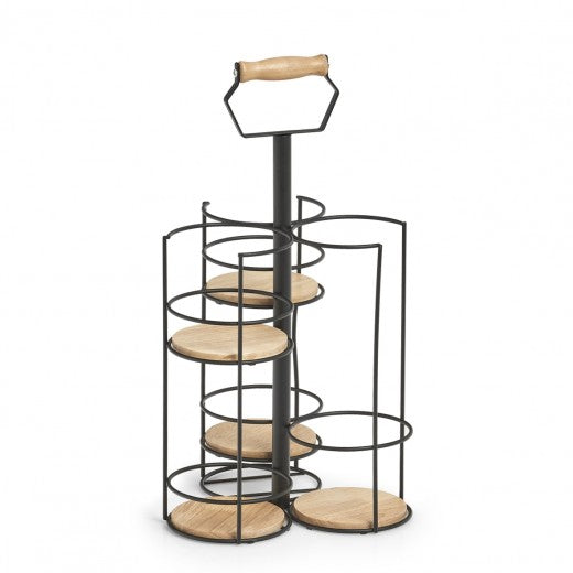 Support avec poignée pour verre et 4 verres, en bois et métal, Noir Rack, l22,5xA22,5xH42 cm