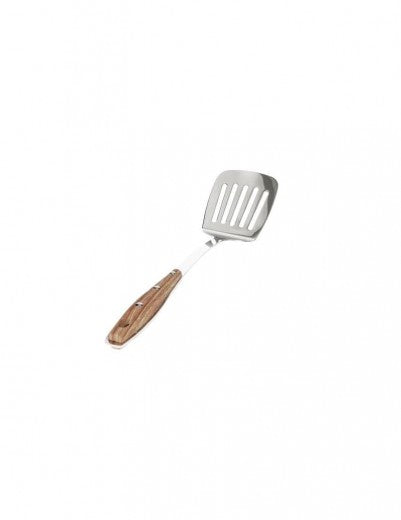 Spatule avec fentes en acier inoxydable, bois naturel, 34,5 cm