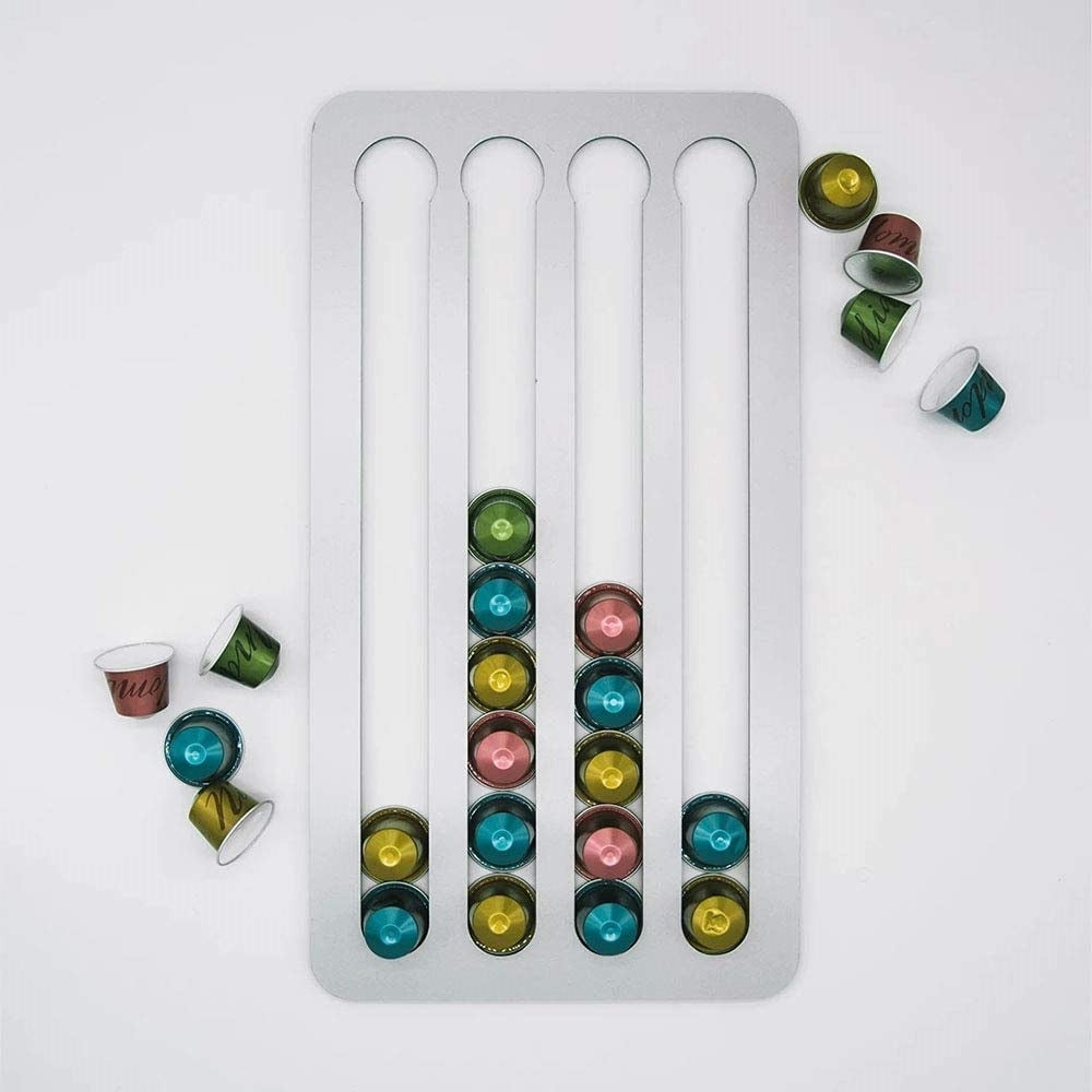 Support adhésif en acier inoxydable, pour capsules de café, Eva Nespresso Original Silver, l22xH0.4xH41 cm