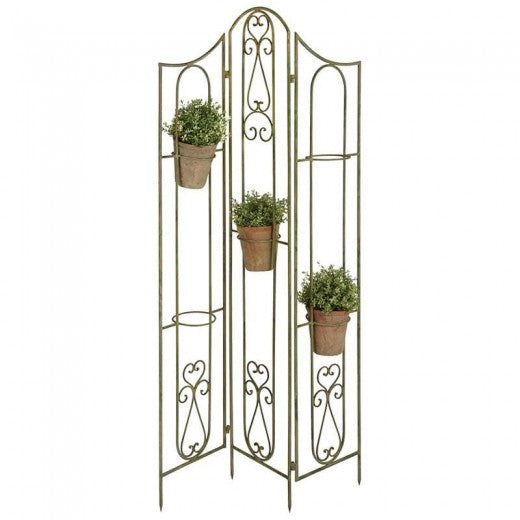 Support pliant pour 5 pots, métal, Fleur Vert Antique, L85xl13xH149,5 cm