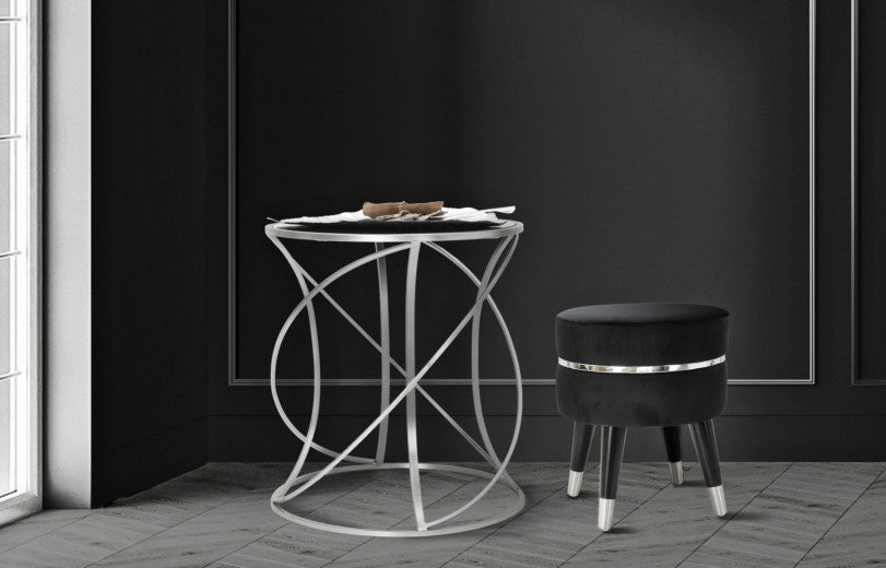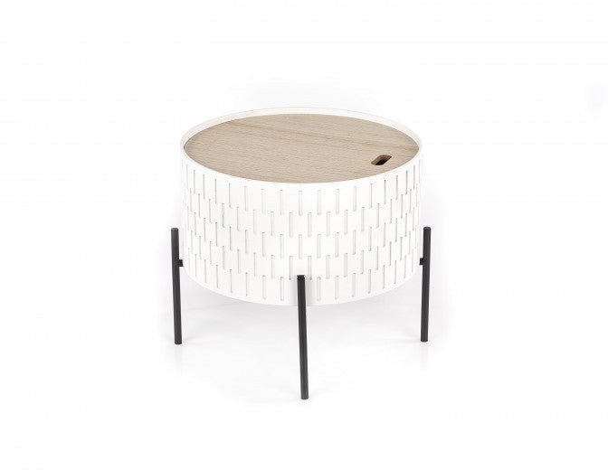 Table basse Sintra Blanc / Noir en MDF et métal, Ø35xH35 cm