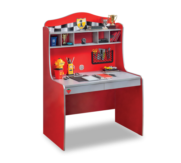 Table de bureau en bois avec étagère et 2 tiroirs, pour enfants Race Cup Rouge, L104xl68xH152 cm