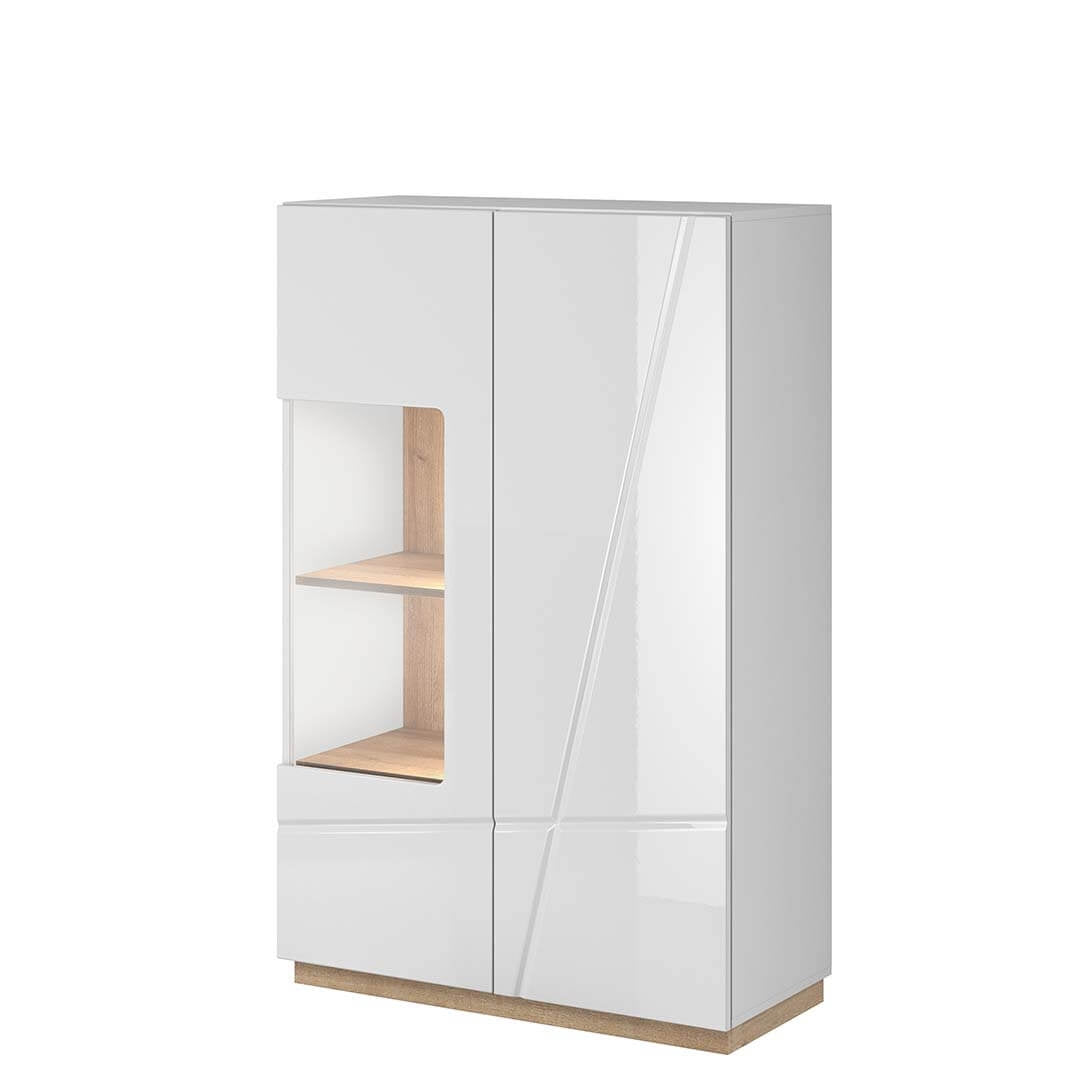 Vitrine en bois, avec 2 portes et LED incluses, Futura 05, Medium  Blanc / Chêne Riviera, L90xW41xH141 cm