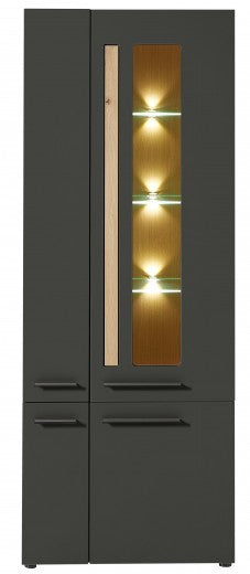 Vitrine en MDF, avec 4 portes et LED incluses Loftis Graphite / Chêne, l76xA37xH201 cm