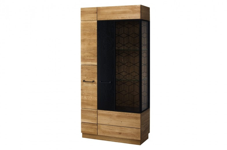 Vitrine en bois avec 2 tiroirs et 1 porte Nest W-2 Chêne, l60xA45xH192 cm