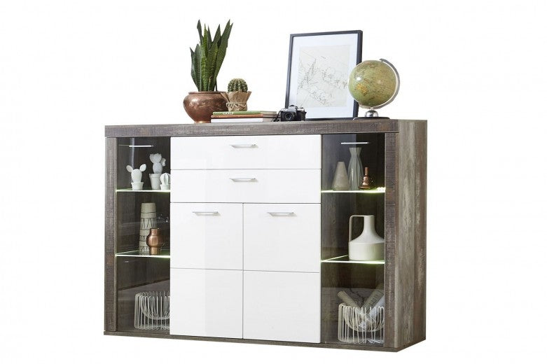 Vitrine en aggloméré et MDF, avec 4 portes et 2 tiroirs Krone Blanc / Natural, l174xA45xH125 cm